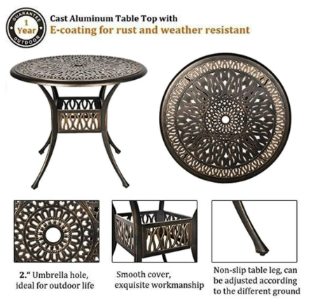 ✅NEVER Rusty: This dining set is made from solid cast aluminum. You know how regular metal chairs start showing brown rust marks after rain? This one will never do that. Rain, sun, harmattan – it doesn’t matter. This set stays looking new year after year. No painting needed. No maintenance. Just wipe it clean and you’re done.