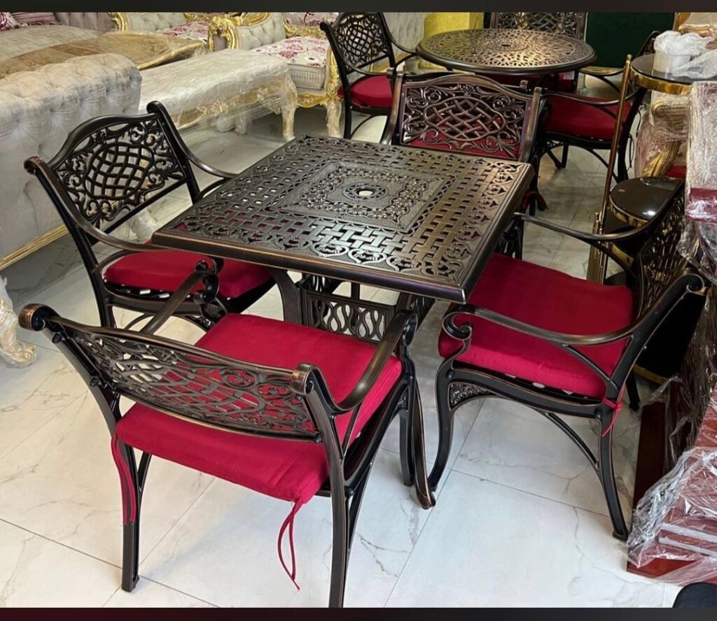 This is a complete 5-piece outdoor dining set that includes 4 beautiful chairs and 1 elegant square table. Everything you need to transform your balcony, garden, or compound into a place you’ll be proud to show people.