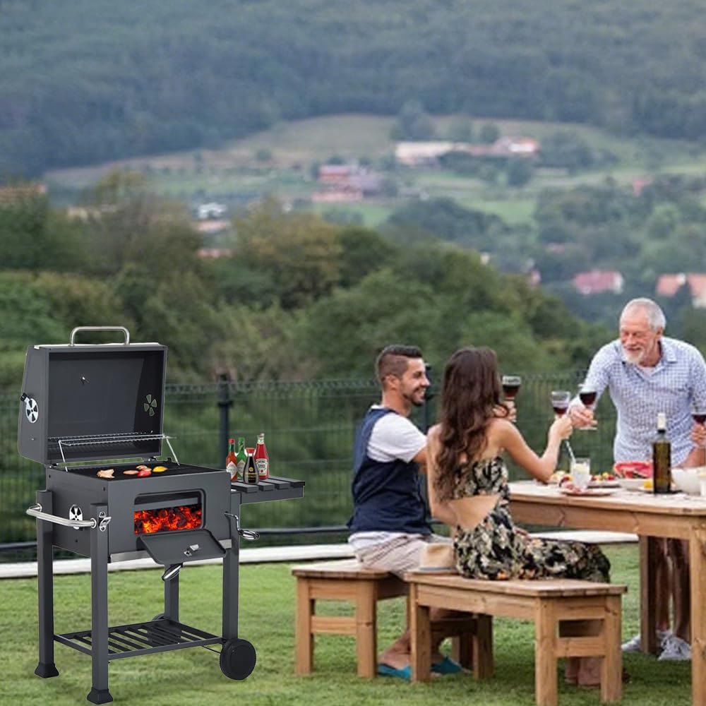 The grill also saves you from dirt and dust. It has a side compactment that gathers and collects charcoal dust and residue to keep a clean environment always