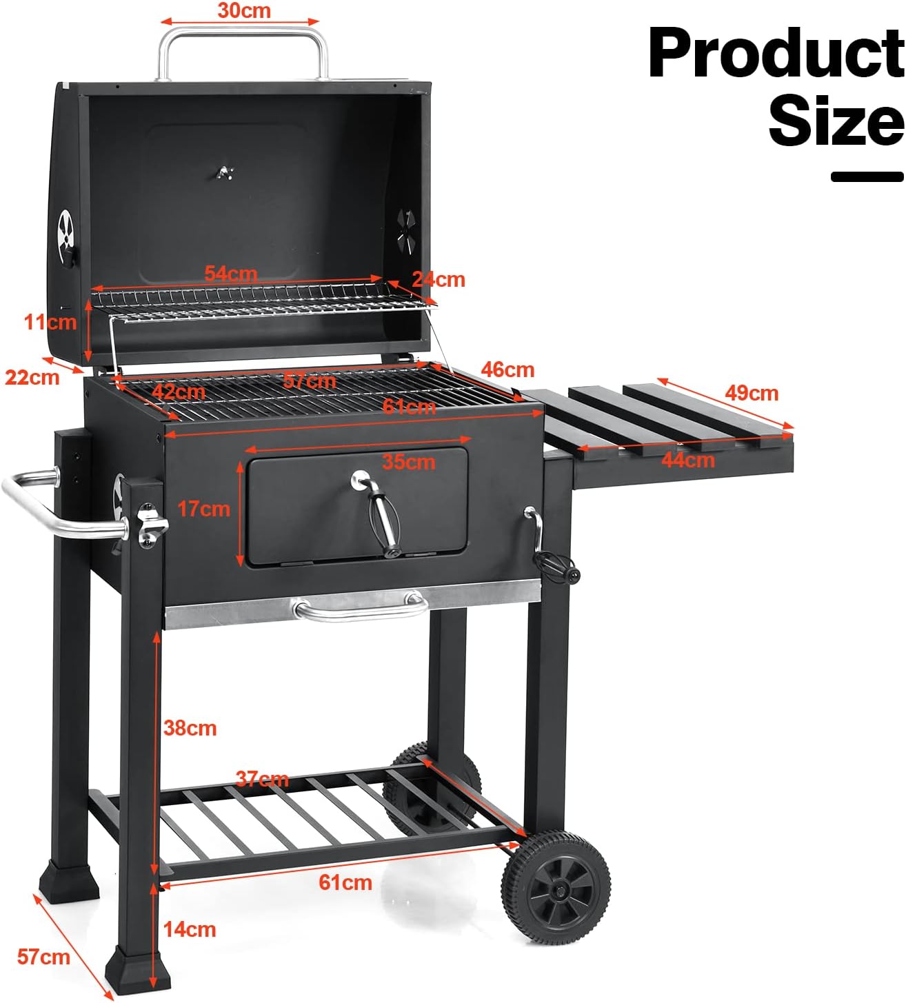 The foldable design makes the charcoal grill space-saving, so you can place it anywhere you like.